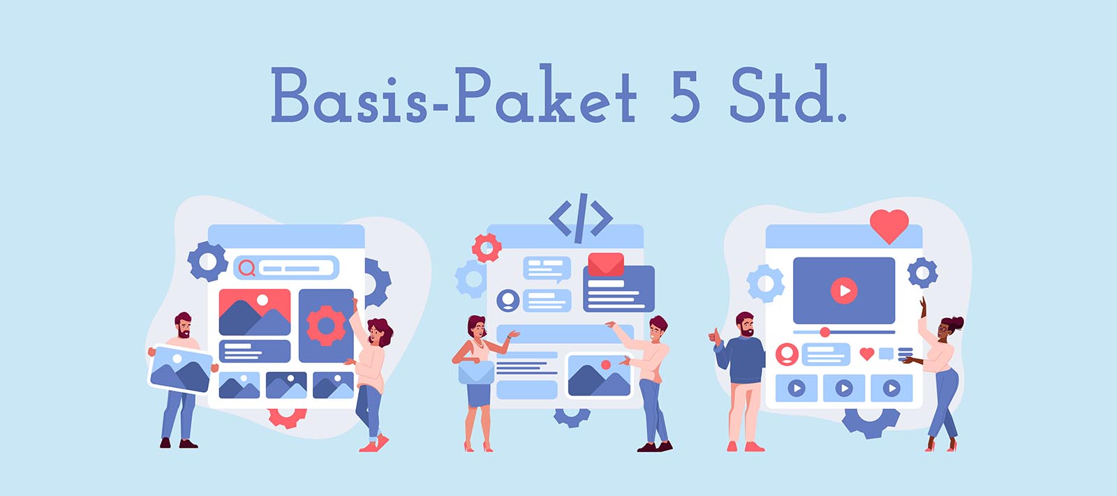 Unser Basis-Paket bietet Ihnen 5 Stunden professionelle digitale Unterstützung pro Monat. Diese flexible Lösung ermöglicht es Ihnen, gezielt und effizient auf Ihre digitalen Bedürfnisse einzugehen, ohne die Notwendigkeit, zusätzliches Personal einzustellen oder sich über langfristige Projektverpflichtungen Gedanken zu machen.